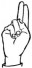 На ћирилици написано КРСТИМИР РАЛОВАЦ састоји се из 15 слова [?]. Исписано ћириличном једноручном азбуком за глувонеме: